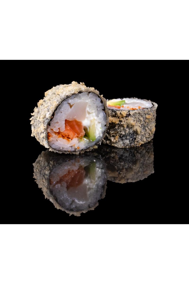Laks, kamskjell, philadelphia ost, avokado. Inneholder: Bløtdyr, hvete, fisk, melk, soya, sennep