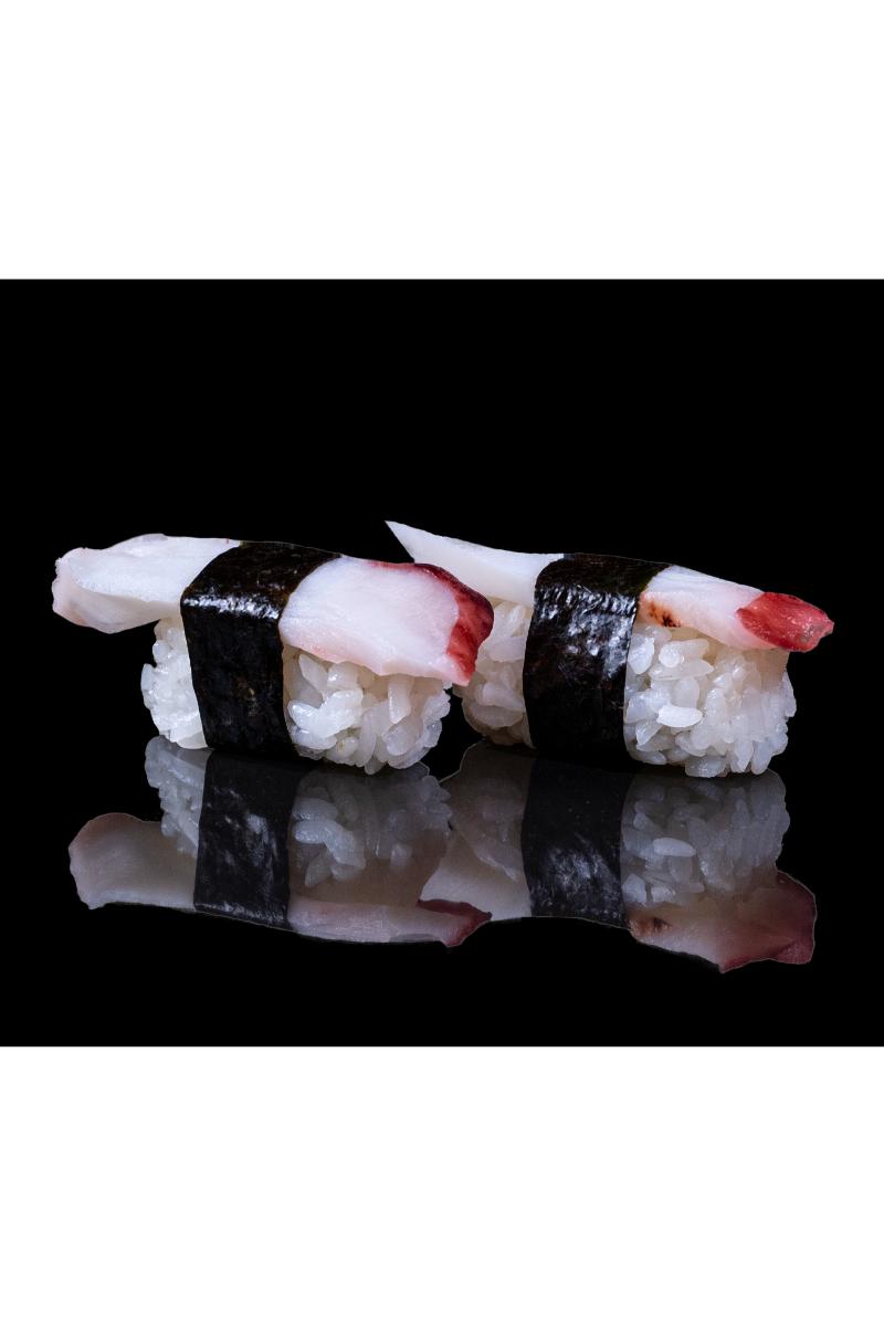 Blekksprut, nori. Inneholder: Bløtdyr, hvete, soya, sennep