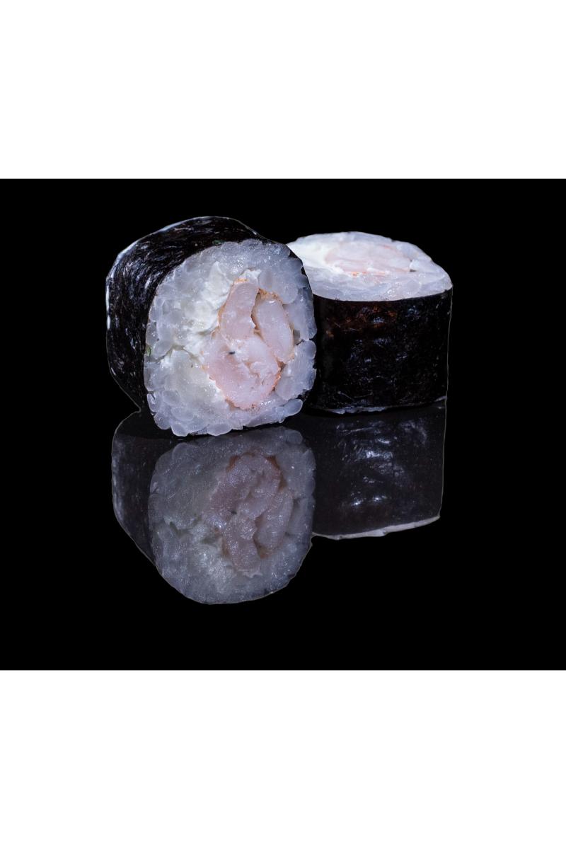 Kokt scampi, philadelphia ost. Inneholder: Skalldyr, hvete, melk, soya, sennep