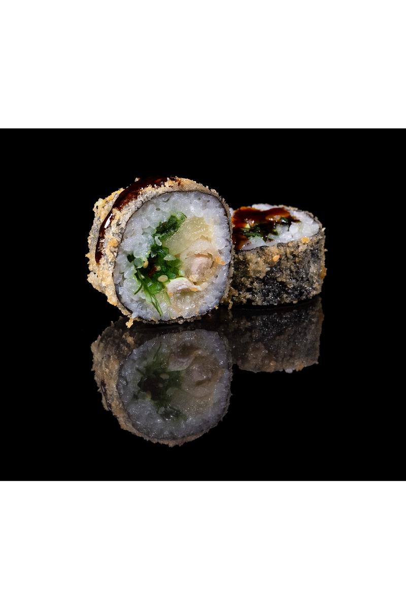 Tempura kylling, ananas, sjøgress, majones, teriyaki saus. Inneholder: Hvete, soya, sennep, sesam,